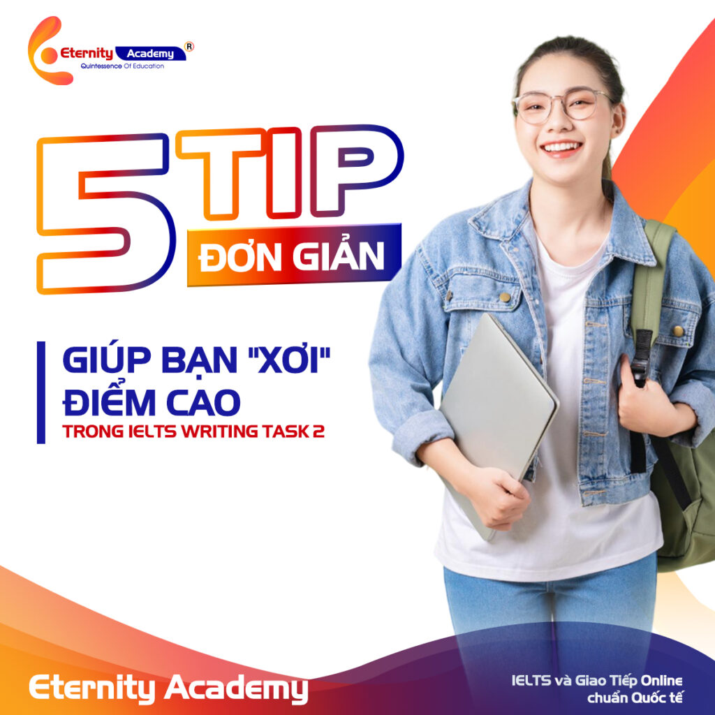 Khi tham gia kỳ thi IELTS, phần Writing Task 2 thường là một thử thách lớn đối với nhiều thí sinh. Dù việc thi trên máy tính đã giúp giảm bớt lo lắng về “giấy sạch, chữ đẹp”, nhưng Writing Task 2 vẫn đòi hỏi khả năng phân tích, lập luận và quản lý thời gian hiệu quả. Đừng quá lo lắng! Eternity Academy sẽ bật mí 5 mẹo giúp bạn tối ưu hóa điểm số trong phần thi này.